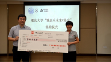 On behalf of Chongqing University and Agile respectively, Yan Wei and Xu Yi signed the contract. Then Xu Yi handed over the cheque and Yan Wei issued the donation certificate.
