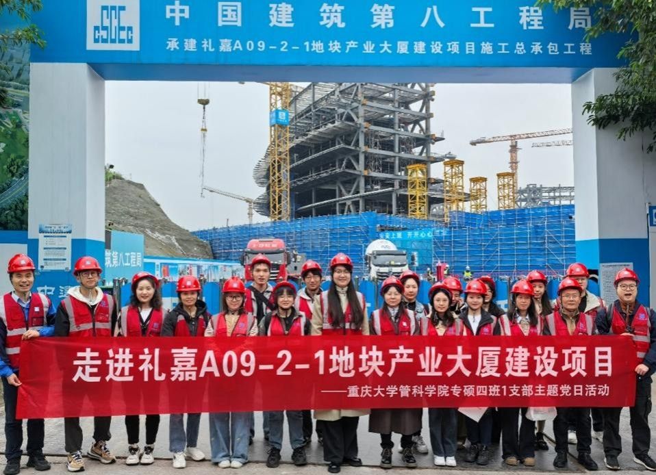 2025年10月31日,中共重庆大学管理科学与房地产学院党委专硕四班1支部开展“管苑党建领航·青锋研途企航”党建特色品牌活动之“走进礼嘉A09-2-1地块产业大厦建设项目”主题党日活动,旨在帮助支部党员深化专业认知,促进理论与实践深度融合。