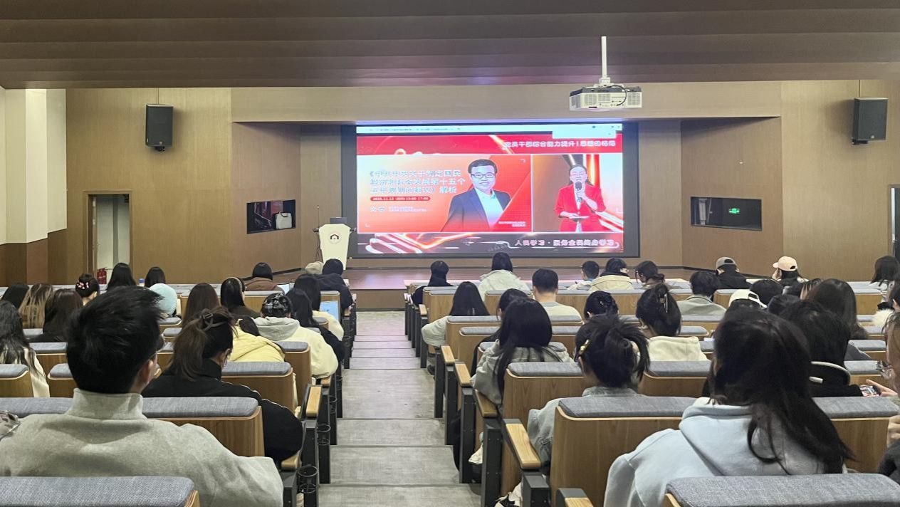 2025年11月27日,重庆大学管理科学与房地产学院组织师生以集中学习和自主学习的方式收看了由前锋干部大学堂直播的“学习党的二十届四中全会精神第二讲”,主讲嘉宾为盘古智库高级研究员、北京大学国际经济与政治学博士文学。