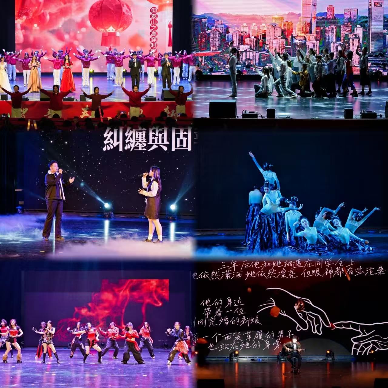 晚会分为“青春序章·逐梦同行”“智汇华章 研途求索”“情韵雅章·共叙芳华”“笃行续章·聚力运航”四个篇章。开篇歌舞《相亲相爱》活力满格,以灵动的舞姿舒展青春姿态,用嘹亮的歌声传递同窗温情,台下掌声与欢呼声交织,瞬间将现场氛围推向第一个高潮;情景朗诵《心中的那道光》,以红岩精神为核心,或沉缓叙坚守,或激昂表传承,字句间的赤诚坚定,让台下漫起滚烫敬意;舞蹈《蘭叙》以优雅的肢体语言勾勒出“兰”的高洁风骨,将传统文化与现代艺术巧妙融合;小品《研途快乐多》以诙谐幽默的剧情,生动展现了研究生们在科研道路上成长经历;《古城晚风》口风琴的清亮与吉他的醇厚交织缠绕,旋律里满是晚风轻拂下的心动呢喃;教师代表登台献唱《中国人》,激昂的旋律与深情的演绎点燃全场爱国情怀,台下掌声雷动,将晚会推向又一个高潮;歌舞剧《美美与共》巧妙融合了敦煌舞的飘逸灵动、古典舞的雅致温婉与新疆舞的热情奔放,在舞台上织就了一幅民族团结、美美与共的锦绣长卷,以此献礼时代,致敬未来……节目形式多元、表演精彩纷呈,为观众呈现了一场震撼人心的兼具视觉美学与精神力量的艺术盛宴。
