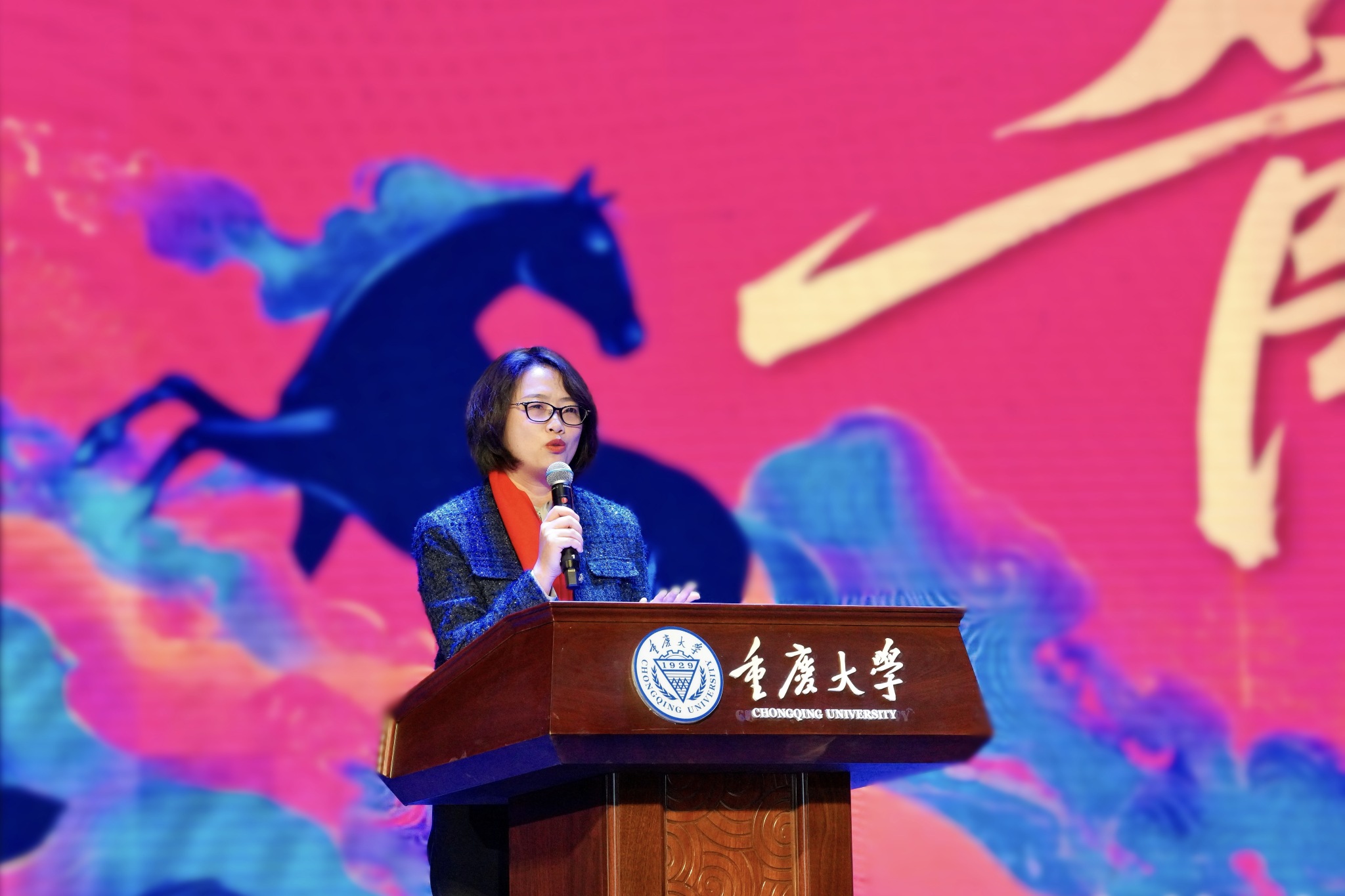 毛超代表学院,向全院师生及各位嘉宾致以诚挚欢迎和新年祝福。她回顾了 2025 年学院在学科建设、人才培养、师资队伍与科研创新等方面取得的显著成绩。她鼓励同学们拥抱不确定性,将每一次经历都视为成长的数据点,强调在AI时代,人与人的连接和创造的冲动才是核心竞争力。展望2026年,她勉励同学们以智启航、以勇破浪,用自己的光芒照亮未来,激励全体师生坚定信心、踔厉奋发,着力培养卓越管科学子,共同推动学院事业高质量发展。
