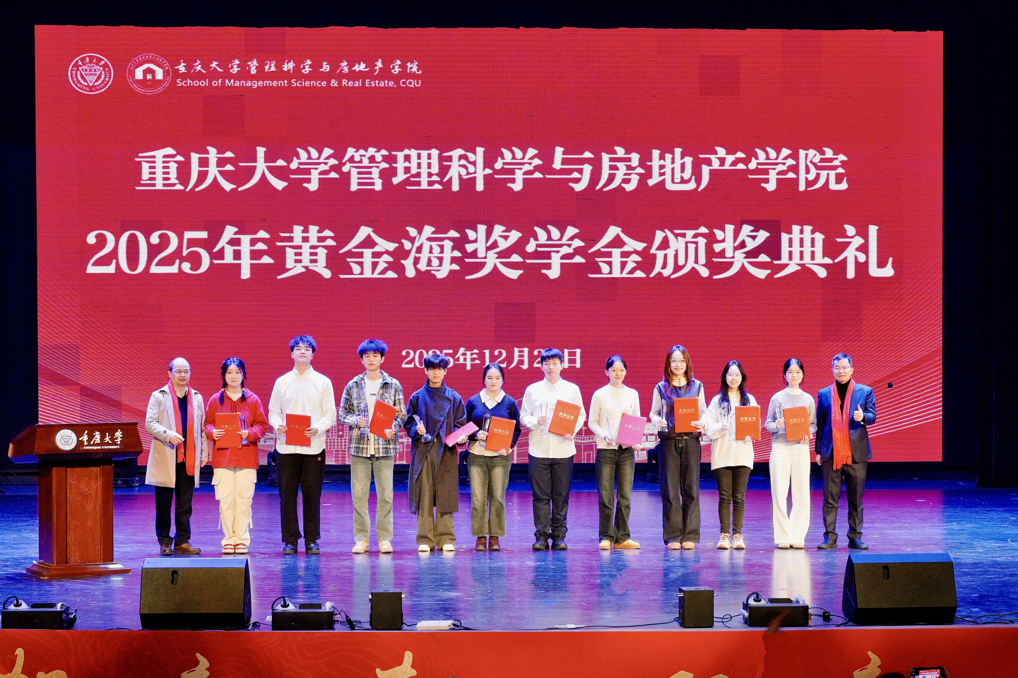 瑞雪迎新,岁序更迭。2025年12月27日晚,重庆大学管理科学与房地产学院(以下简称“管科学院”)在重庆大学B校园科学会堂举办2026“管理之春”元旦晚会,师生欢聚一堂,共同喜迎新年。管科学院党委书记毛超、院长叶堃晖、副书记张雄、副院长向鹏成、洪竞科、曾德珩,优秀校友、重庆两江建筑工程有限公司董事长黄金海,各系系主任以及全院师生参加晚会。