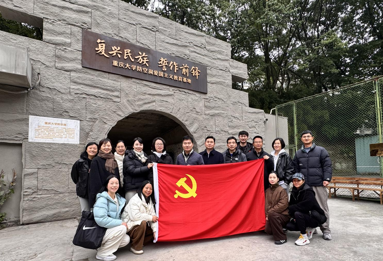 全体党员前往重庆大学防空洞爱国主义教育基地参观学习。通过参观历史照片与战时临时活动室、教室、物资储存室等复原场景,党员同志们深入了解了抗战时期重大师生于防空洞中坚守教学科研、救亡图存的峥嵘岁月,深刻感悟了“复兴民族,誓作前锋”的重大精神。